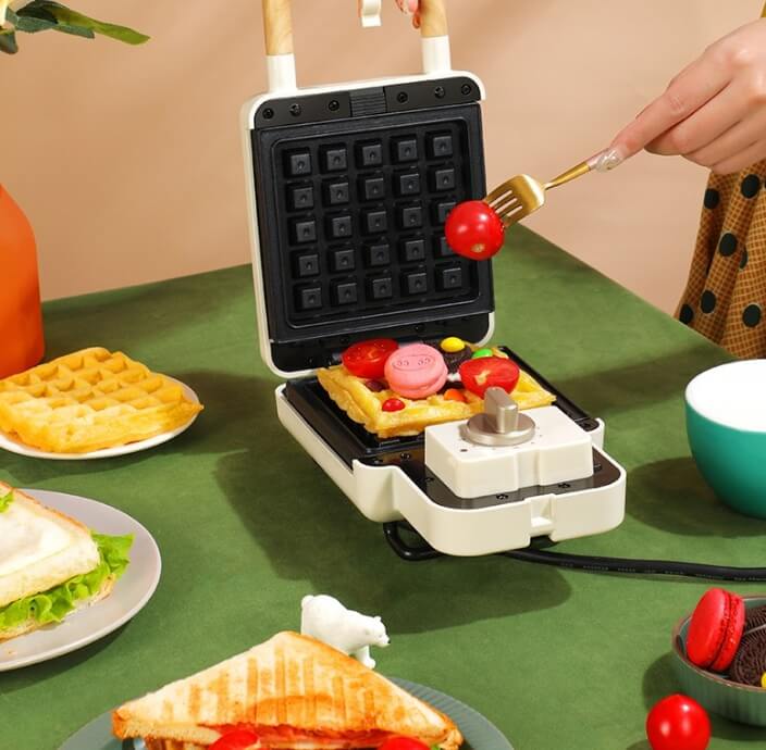 - 이 와플 메이커는 간편하게 토스터나 와플을 만들 수 있는 실용적인 제품이다. 사용자는 이 기계를 활용해 집에서 손쉽게 다양한 음식을 조리할 수 있다. 언제 어디서든 간편하게 사용할 수 있는 이 제품의 실용성은 뛰어나다.
